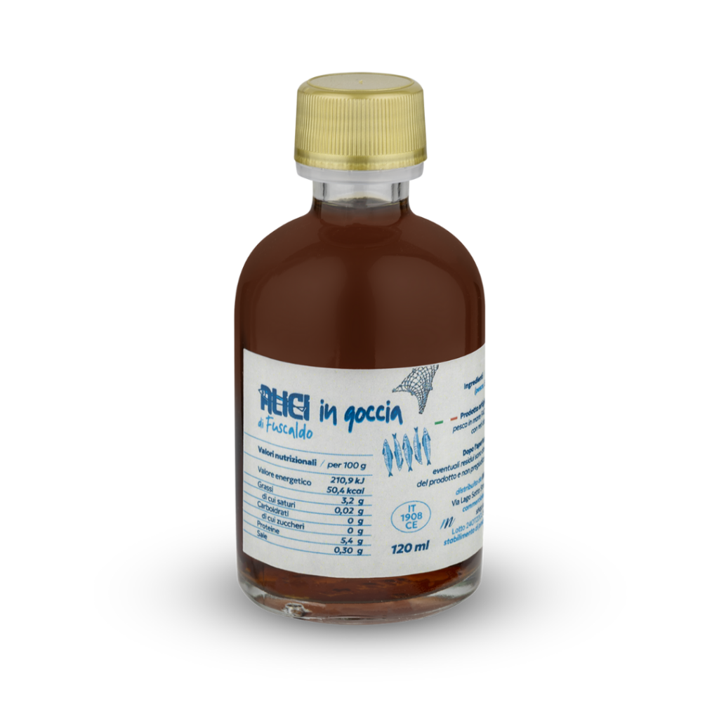 Le alici sono state pescate con maestria e trasformate in una colatura di eccellenza, racchiusa in un pratico flacone per esaltare ogni piatto con l'intenso sapore del mare. Bastano un pò di gocce per quel profumo di mare che stai cercando!